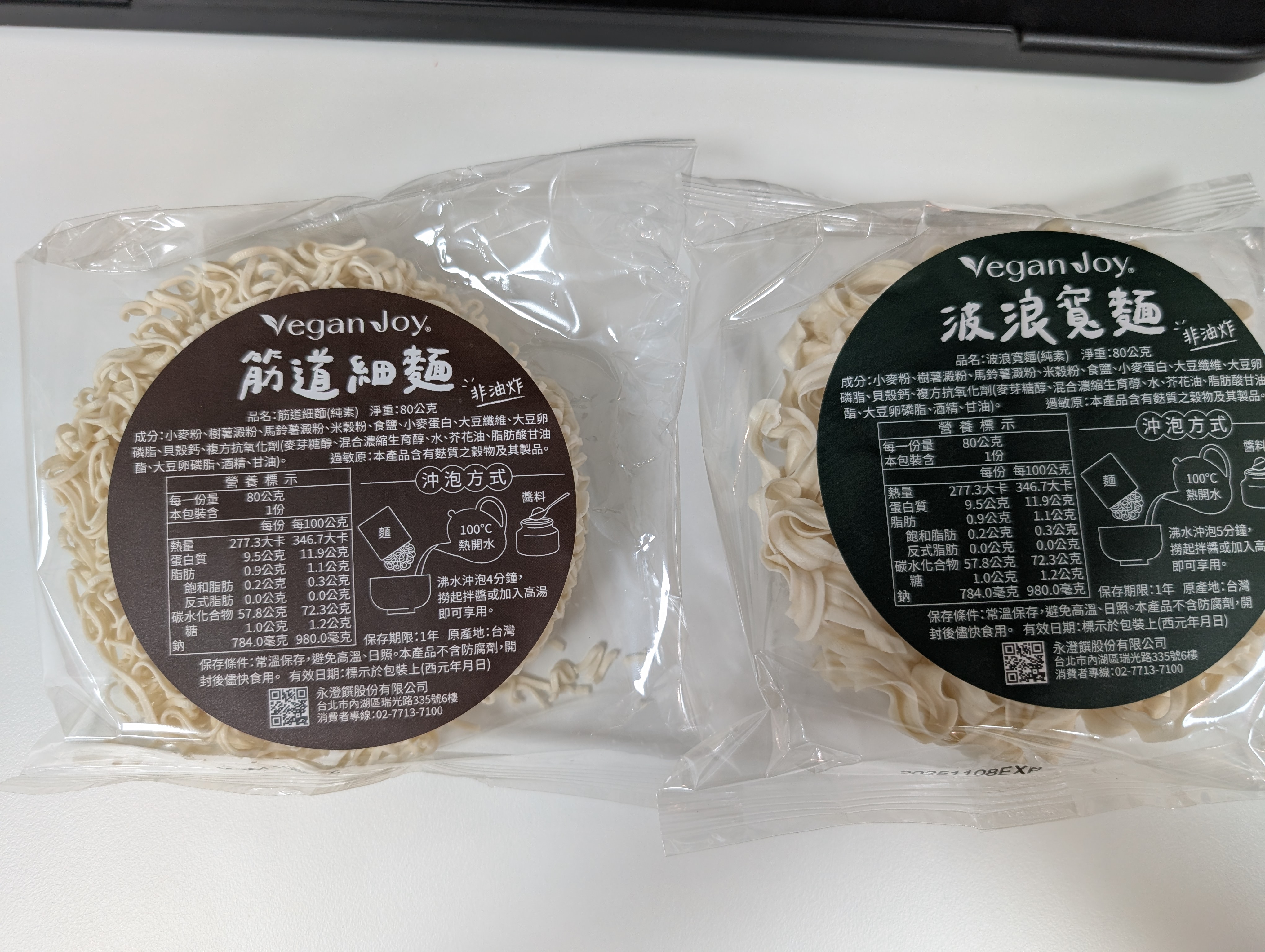 實測結果: 令人驚豔的是,兩款麵體在建議時間內都能完全泡透,吃起來沒有粉粉的生麵感。麵條口感相當滑順,表現超出預期,證明其確實適合快速沖泡。