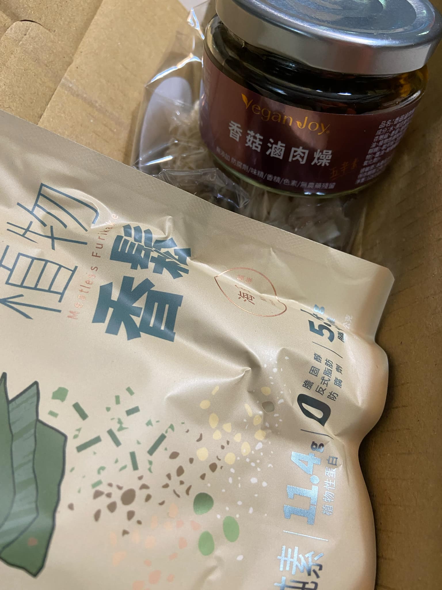 我原本對植物肉產品存有偏見,因為過去的食用經驗讓我覺得植物肉不可能擺脫特有的不快氣味與突兀口感,而擔心本次的植物肉產品也會如此。然而,Vegan Joy 的香菇滷肉燥醬與海苔植物香鬆顛覆了我對植物肉產品的既有印象,因為沒有一般植物肉產品為仿造肉色、肉味與肉感而添加的大量複雜添加物,使得Vegan Joy 的產品在氣味、風味與口感上更顯自然且美味;與此同時,產品在味道與口感上卻能與含肉的肉燥醬與香鬆十分相似,雖然不可避免的缺乏肉燥醬與香鬆應有的肉味,卻也因此少了肉品的肥膩,使產品吃起來更加清爽而不油膩。